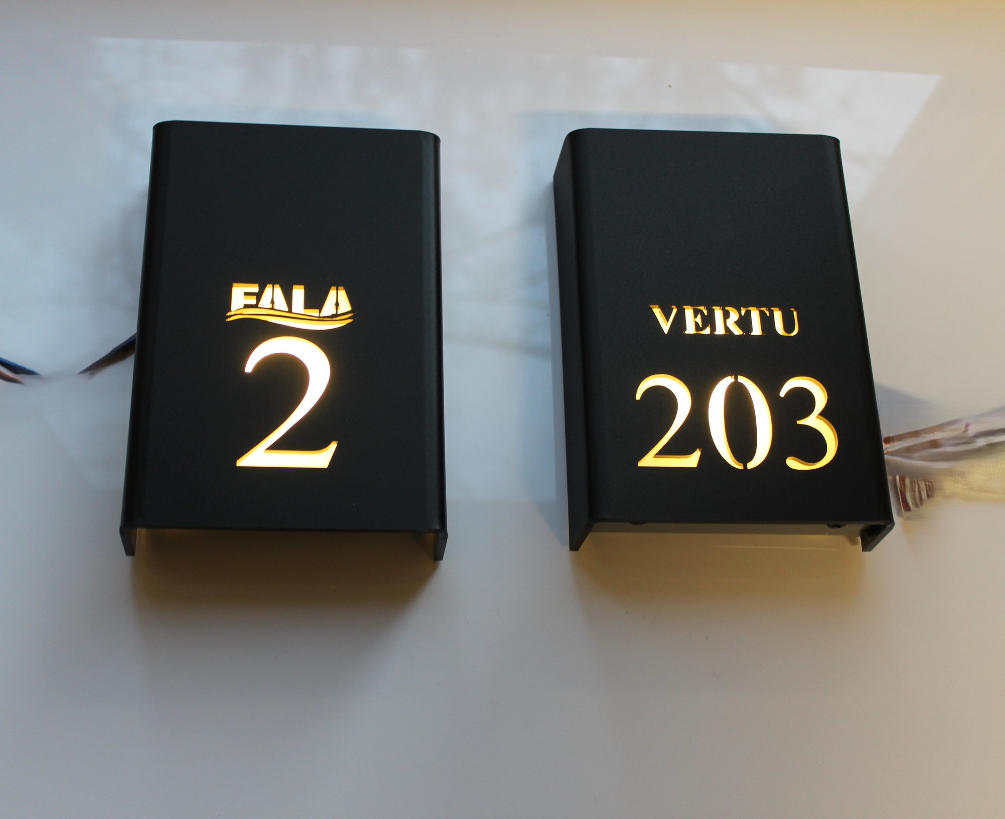 A modern-design LED door sign crafted from premium acrylic glass, ideal for hotels and luxurious apartments.
