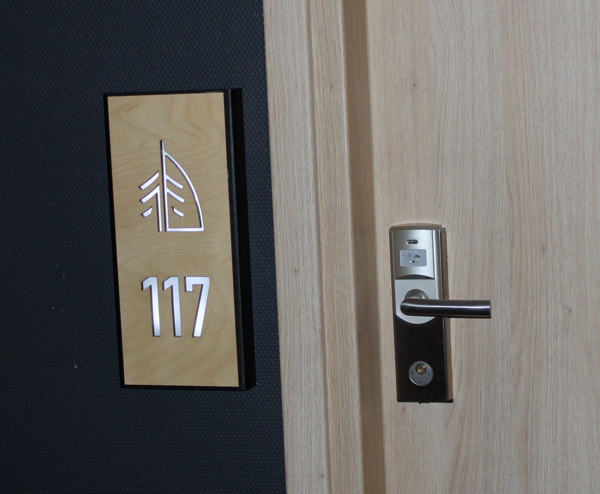 A modern-design Wood LED sign crafted with precision and high-quality materials, well suited for hotels and upscale apartments. Its warm wooden finish and soft illumination create a refined, contemporary look. Clients may also personalize the sign with their own logo, tastefully engraved for an elegant, custom touch.